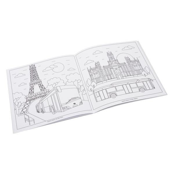 Zbiór 12 kolorowanek przedstawiających autobusy Solaris w różnych miastach europerskich . Format: 20 x 20 cm. Odpowiedni dla dzieci powyżej 3 lat.