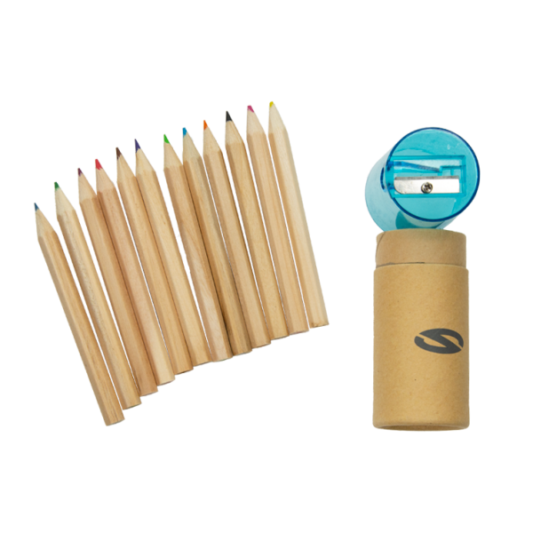 W tubie 12 drewnianych krótkich kredek oraz temperówka w niebieskiej, transparentnej pokrywce. Kredki przeznaczone dla dzieci powyżej 3 lat.