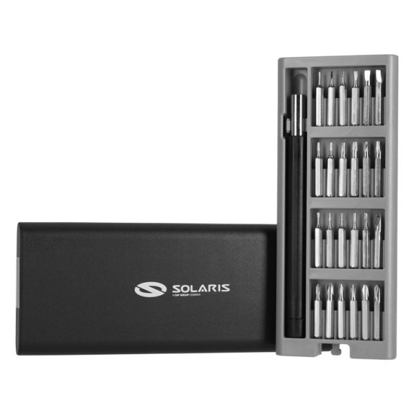 Zestaw wkrętaków precyzyjnych 26 szt. w tym. śrubokręt i 24 różne końcówki, w poręcznym pudełku.